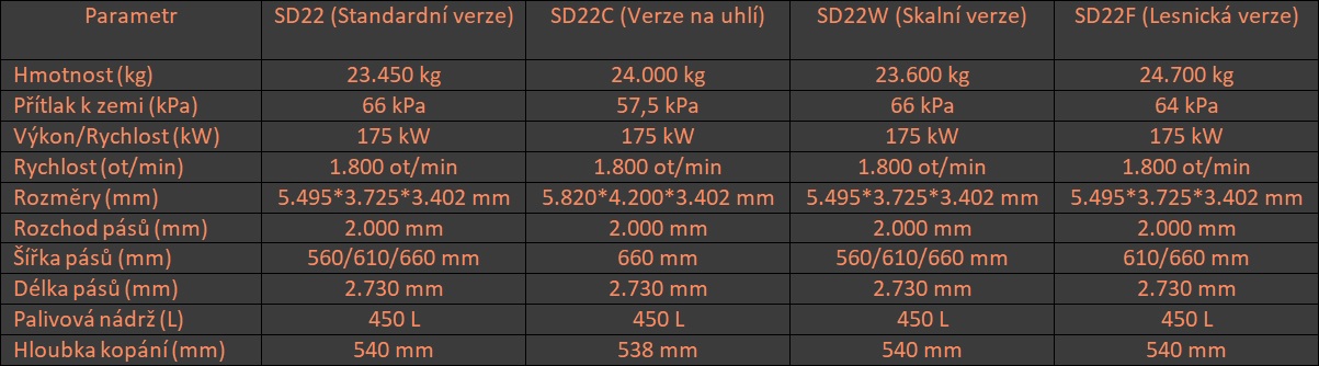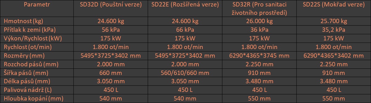 Technická specifikace jednotlivých modelů